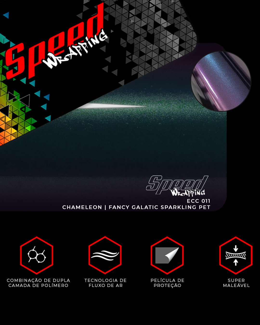 CHAMELEON | FANCY GALACTIC SPARKLING PET cód. ECC 011 . O efeito Camaleão é simplesmente hipnotizante ✨ A cada ângulo, uma nova cor aparece, criando um visual dinâmico, excl